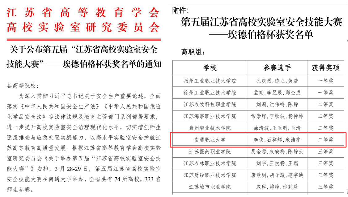我院教师在第五届“江苏省高校实验室安全技能大赛”中喜获佳绩