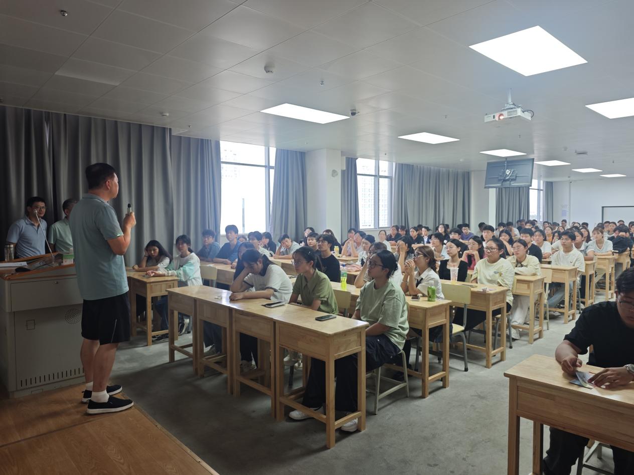 随后,黄惠南教授针对新生普遍关心的数学学习难点,进行了微积分与线性代数的学习方法指导。黄教授以其丰富的教学经验,讲解了课程的知识框架与高效的学习技巧,帮助同学们破除畏难情绪,打好坚实的数学基础。