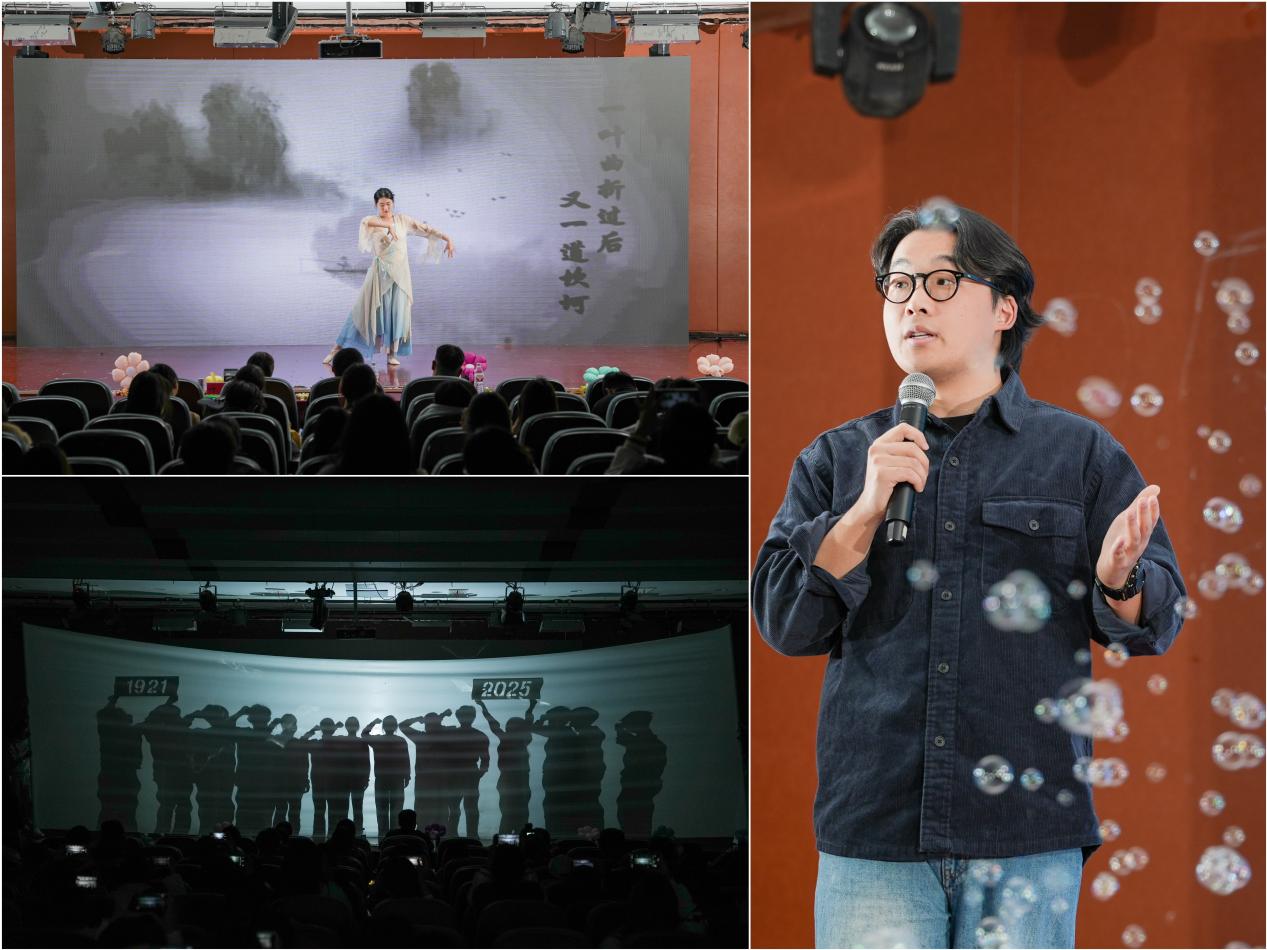 “匠心·谱绘荣光”篇章里,幕布剧《中华崛起》以独特的表演形式,展现了家国情怀与时代担当,给观众带来深刻的情感共鸣;24级班主任颜艺老师深情献唱《小宇》,以细腻真挚的演绎触动了在场每一位观众的心弦;独舞《一程山路》中,表演者朱一凡以优雅的舞姿、精湛的技艺,描绘出一幅充满诗意的山水画卷,令人陶醉其中。