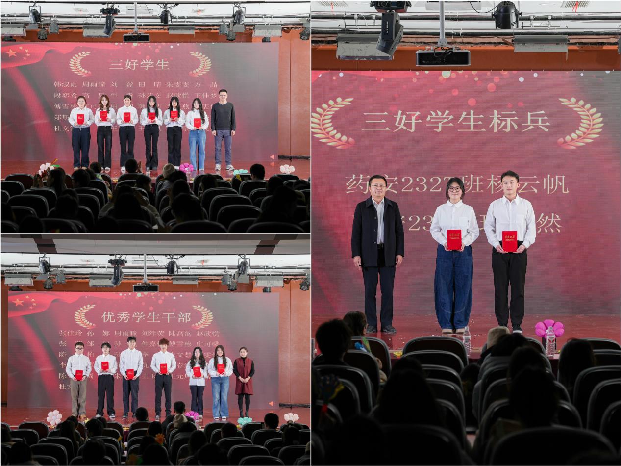 晚会节目进行过程中,为表扬在过去一年里,辛勤付出、刻苦奉献的优秀学生们,晚会设置了颁奖环节,邀请校党委委员、组织部部长李跃兵、学院党总支书记姚弘、副书记叶青分别为学生颁发“三好学生标兵”“三好学生”“优秀学生干部”奖项。