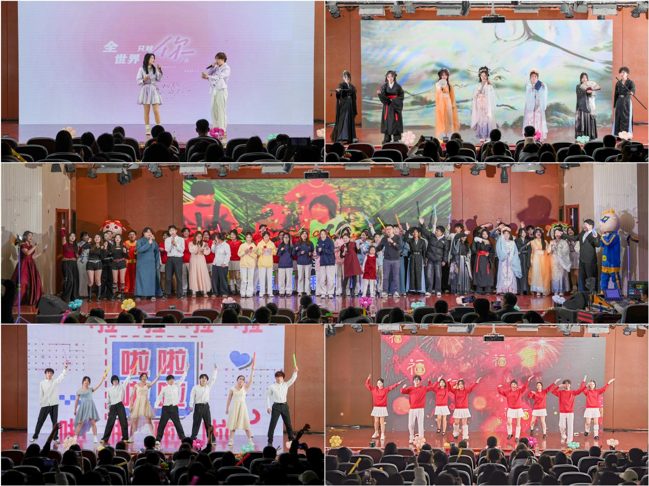 晚会以“新声·漾启风华”“匠心·谱绘荣光”“筑梦·共赴华章”三大篇章为主线,节目形式多样、精彩纷呈,涵盖舞蹈、声乐、相声、幕布剧、汉服表演等多种艺术形式,充分展现了化工学子多才多艺、积极向上的精神风貌。